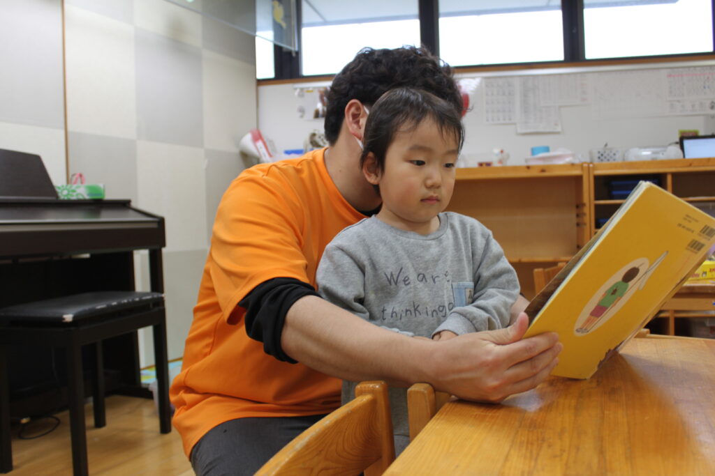 4月23日は、こどもの読書活動について意欲を高めるために文部科学省が定めたこども読書の日です。こども園には沢山の絵本があり、こども達は保育室で絵本を読んでもらったり、自分達で絵本を読んだりと、日々絵本に慣れ親しんでいます。絵本を楽しむことで、その子自身の表現力や創造力にプラスになってもらえたらと思います。