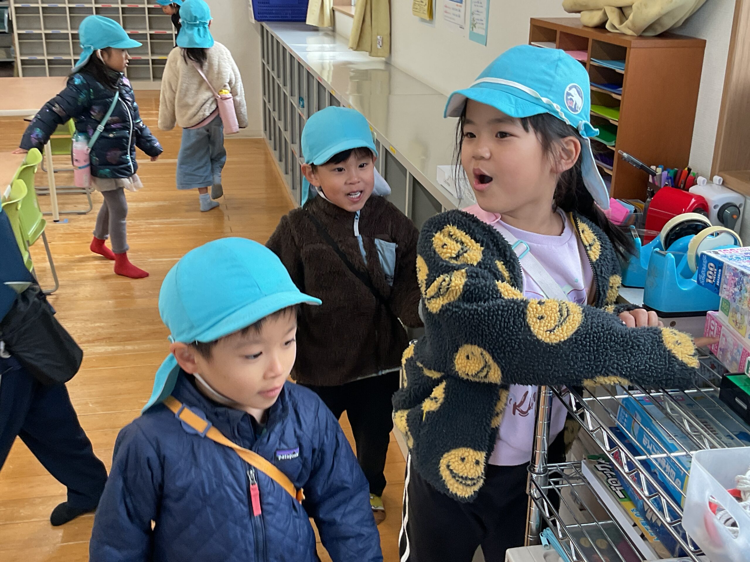 4月からはいよいよ1年生。今日は「つくみ学童」の見学に行ってきました。第一・第二のどちらに通うかをすでに知っている子もいて、みんなワクワクした様子でした。学童に入ると、「うわー!」「すごーい!」と目を輝かせながら、楽しそうに見て回っていました。トイレの大きさやおもちゃの種類の違いにも驚いていたようです。見学を終えた子どもたちは、「楽しかった!」と笑顔で話してくれ、4月からの新しい生活を心待ちにしている様子が伝わってきました。