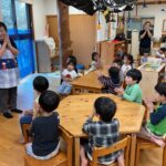 絵の具を使ってボディーペインティングをして遊びました。とっても楽しそうな子どもたち。感覚遊びとしても最高ですね。色や質感を肌で感じながら、自由に表現できるのは子どもにとっても貴重な体験です。 ローラーを使うと更にダイナミックな模様ができ、紙や段ボール、手だけじゃなく腕や足までキャンバスになるのも面白いようでした。 色の混ざり方や、絵具の冷たさ・ぬるぬる感など、五感をフル活用していました。