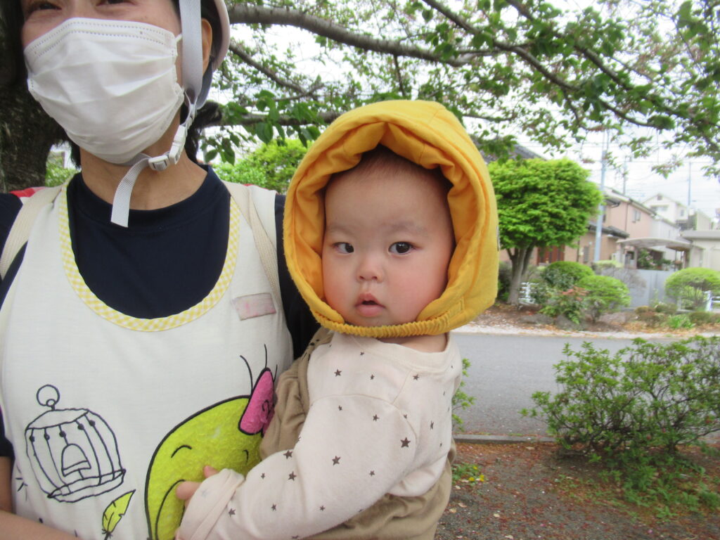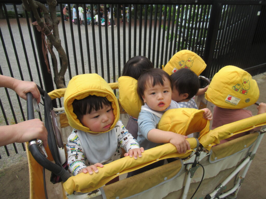 新入園児にとっては入園後初めての経験となりましたが、保育者の誘導に、スムーズに散歩車へ移動することができました。