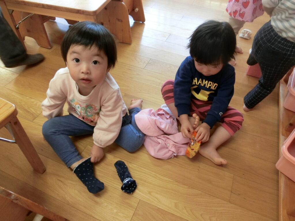 靴下が履けなかったり、靴が逆だったりすることはありますが援助しながら見守り、