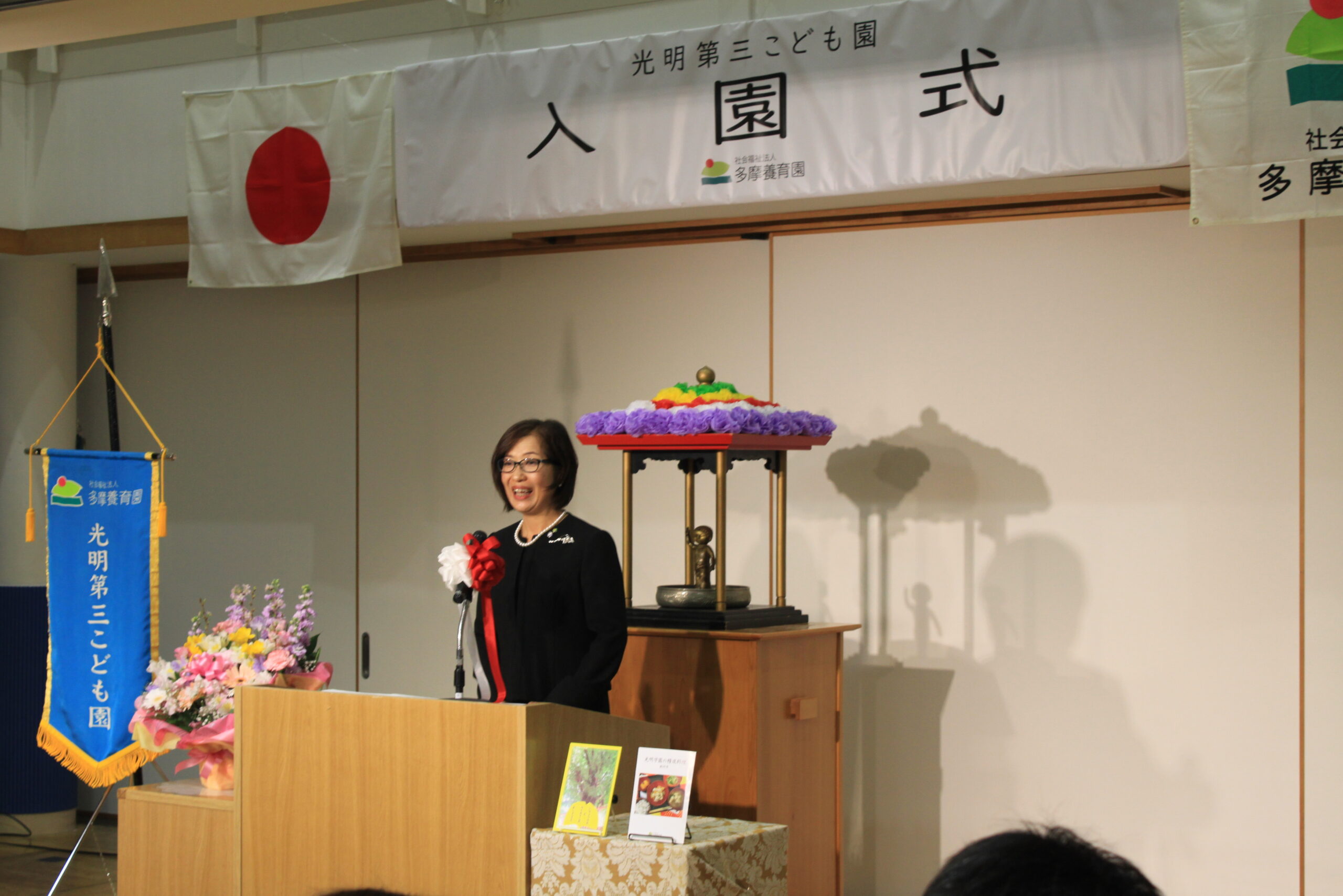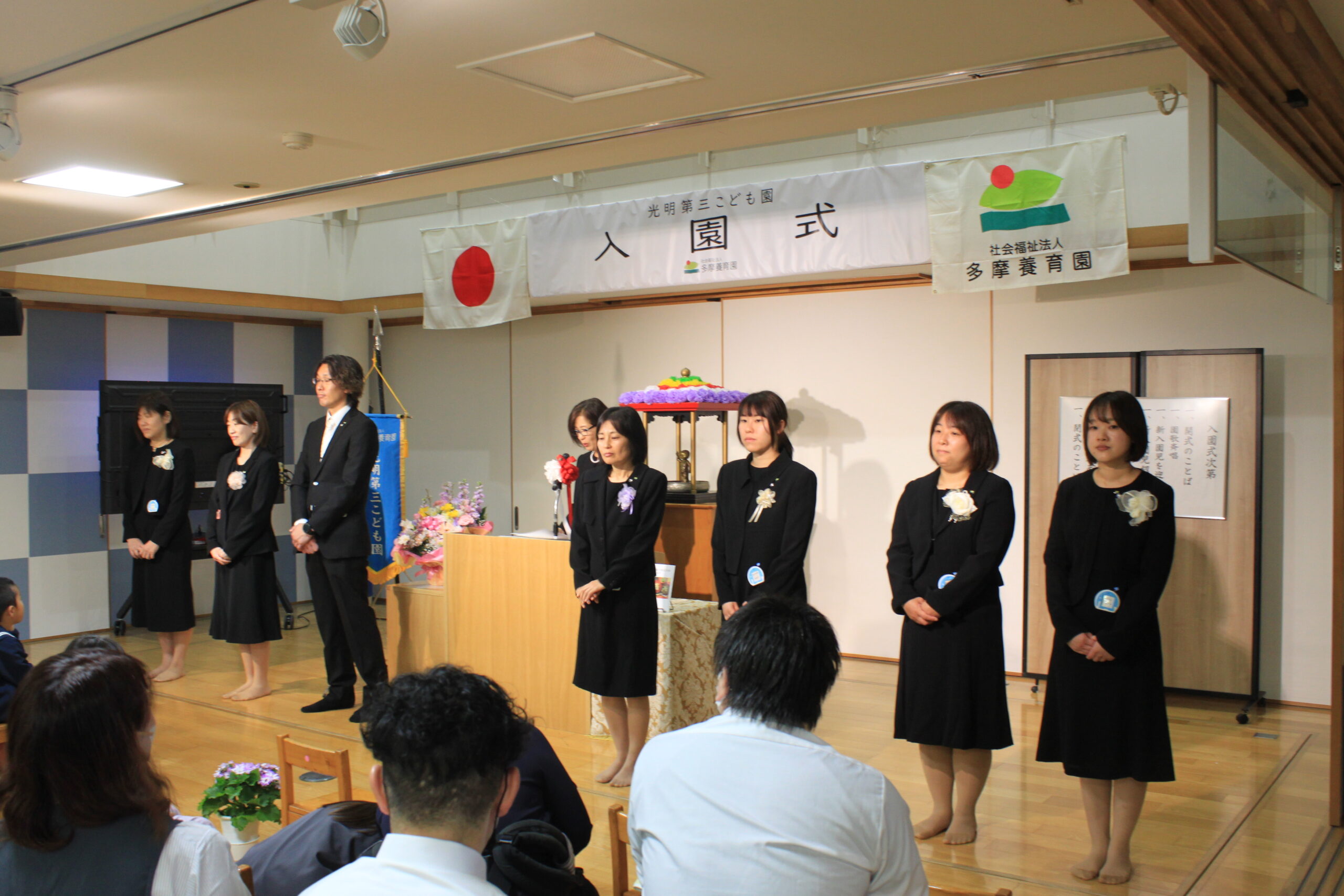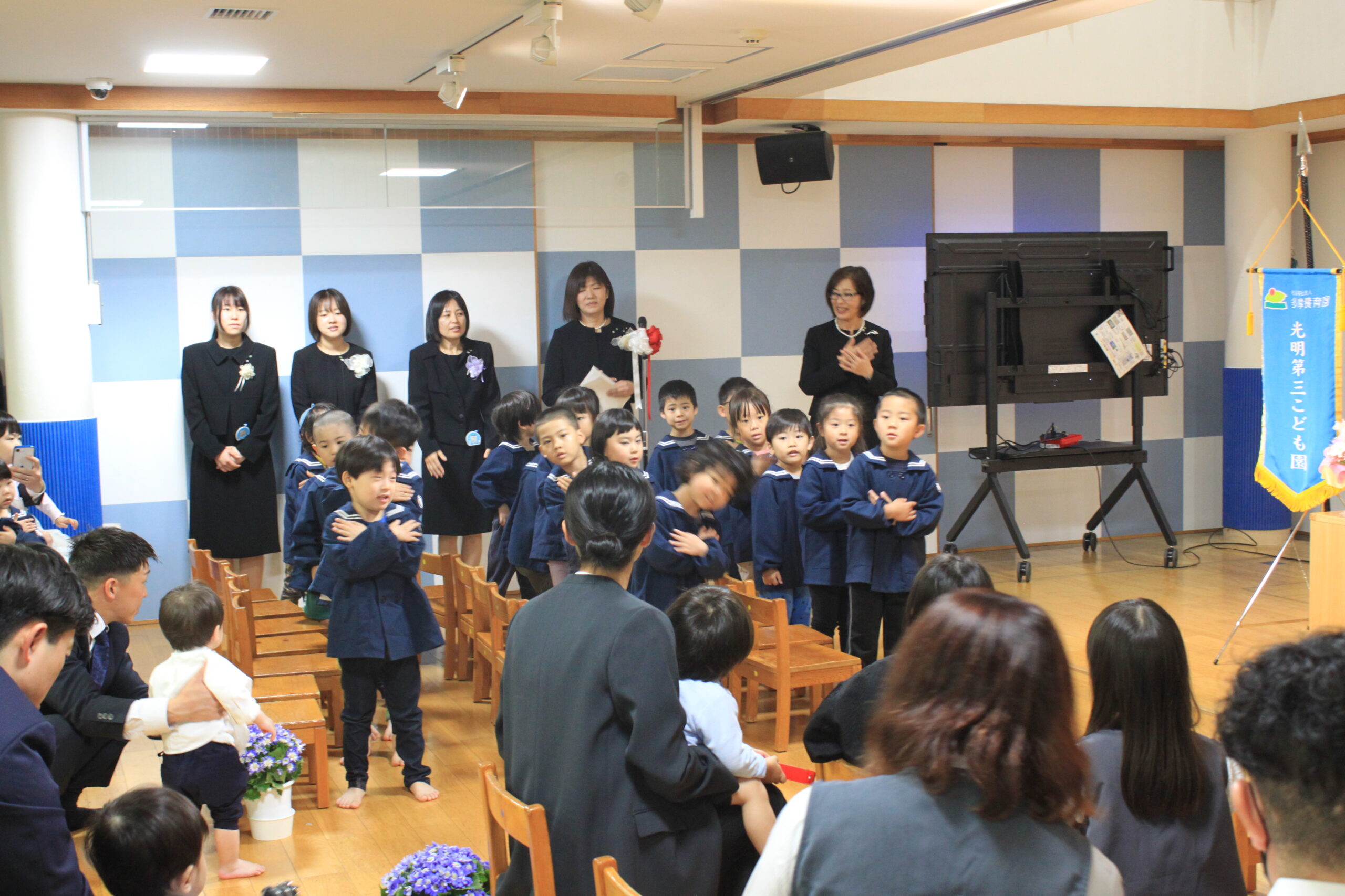 式には、幼児組の友達も参列し、園歌やお迎えの言葉で、友達をお出迎えしてました。
