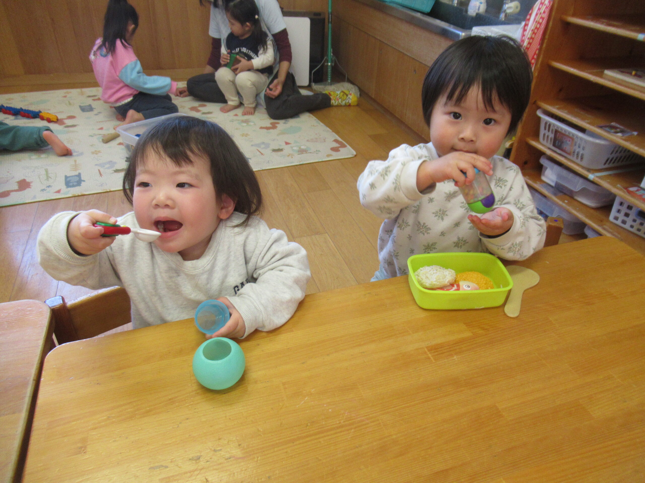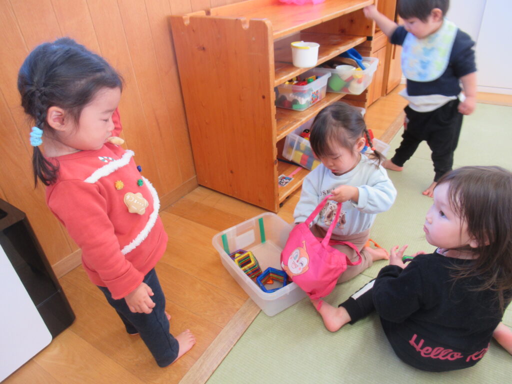 進級に向けて2歳児クラスで過ごすようになり数日が経ちました。少しずつではありますが色々な遊びに興味をもって楽しみながら過ごす中で、新しい環境にも慣れてきている姿がみられる子どもたちです☆