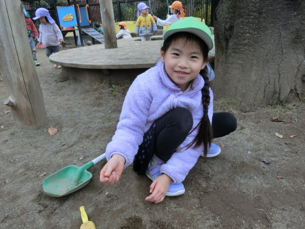 先週土曜日にひかりの子どもの遊戯会が無事終わりました。保護者の皆様の温かい拍手、ありがとうございました。今日、幼児組は園庭に行きました。大人気のアスレチックや、砂場で思い思いの遊びを展開する子ども達の姿が見られました。「登れたよ!」「〇〇くんもおいでよ!」などの会話が交わされ、にこにこのかわいい笑顔が見られました。