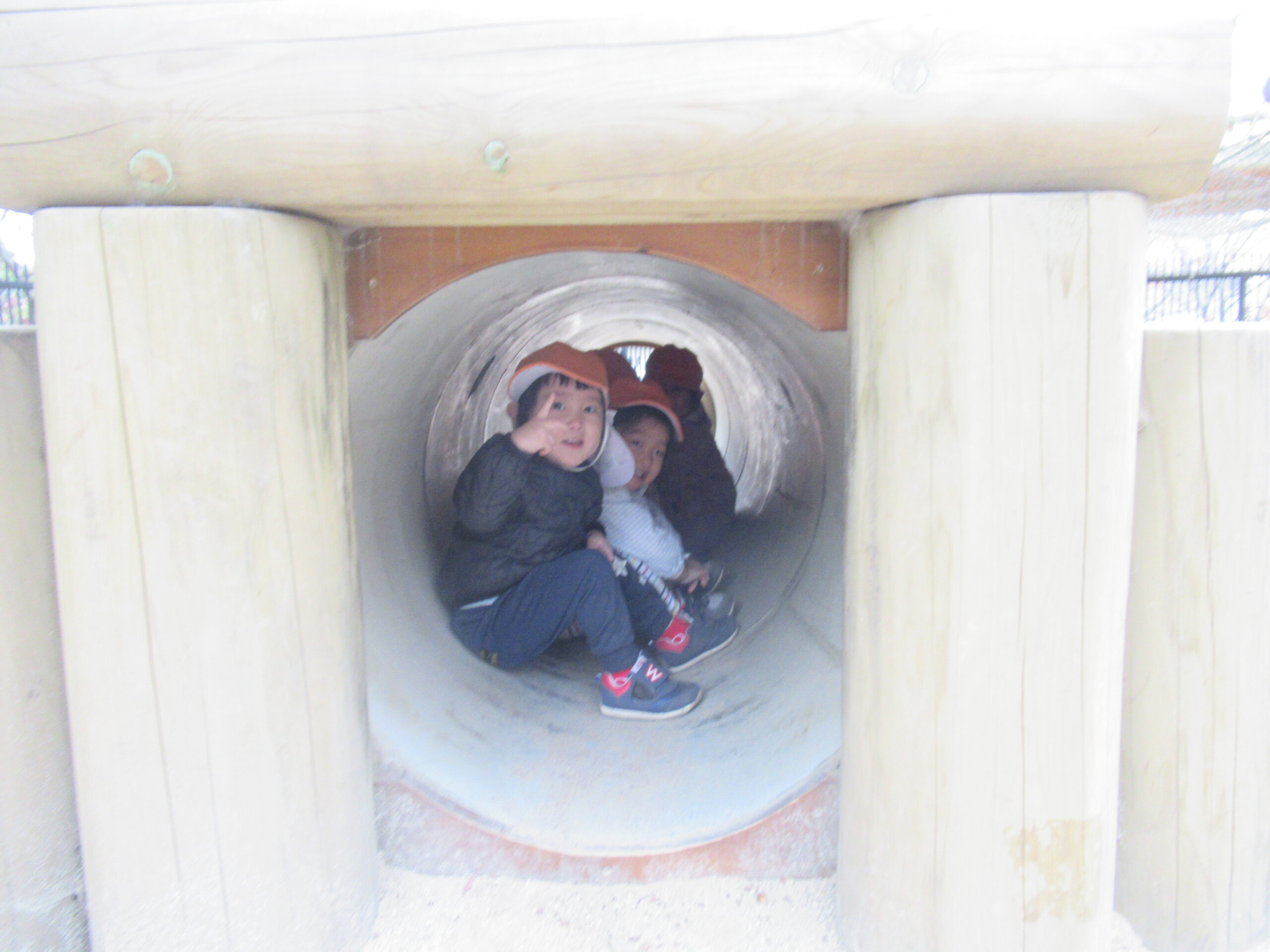 他にも砂場でごっこ遊びをする子、土管に隠れてかくれんぼをする子など、ルールのある遊びをすることが増えてきました。
