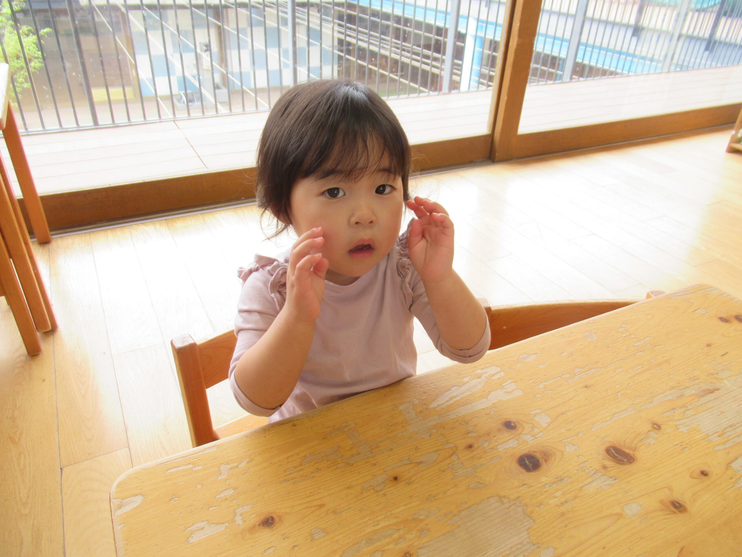 おはようの歌では「おはよー」と可愛いポーズを付けて、元気いっぱいに歌っている子どもたちです。