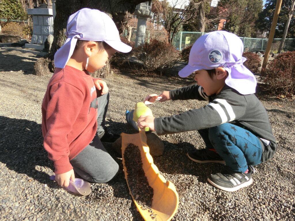 ぽかぽかと日差しが暖かくて、上着を脱いで楢の里広場で元気いっぱい遊びました。大きい子にくっついて真似たり小さい子に教えたりしながら、自分達で鬼ごっこや木登りなど遊びのルールを作って進めていました。四月から始まった星チームの仲間との生活・・・いろいろなことを一緒に楽しんだり、一緒に行事を経験したりしてきた中で、友達との関わりも広がり、関係も深まっています。気の合う仲間との遊ぶ姿を見ているとその関係性が良くわかり、楽しそうな子ども達の姿にほっこりする星チームです。元気いっぱいあそんだ後、給食までの時間はちょっと落ち着いて休息タイム。大好きな紙芝居を楽しんでからおいしい給食を頂きました!