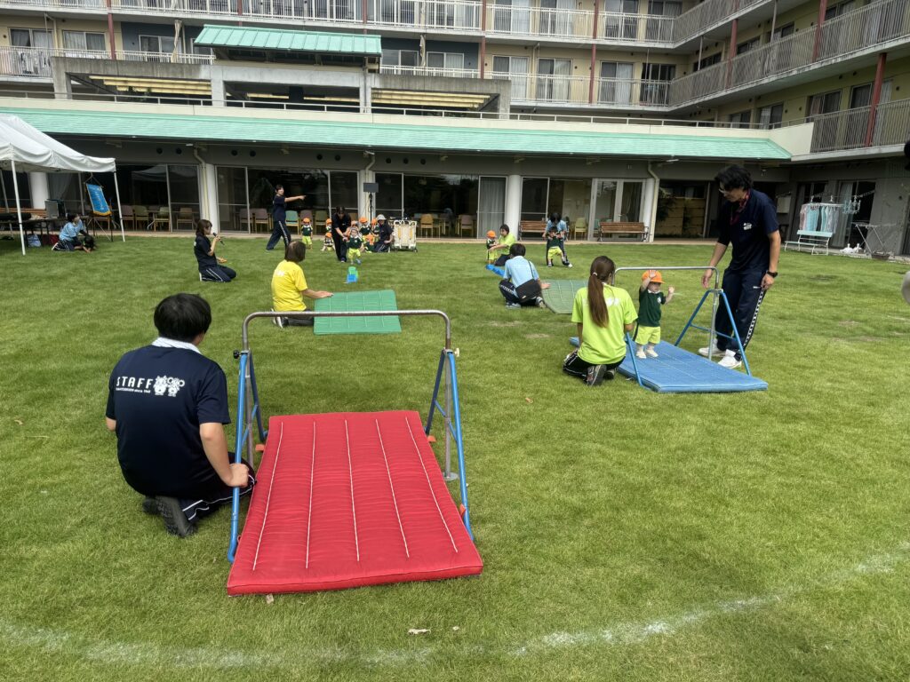 子どもたちは体操やかけっこ、跳び箱や鉄棒等をぶら下がるゴーゴーサーキットを行いました。