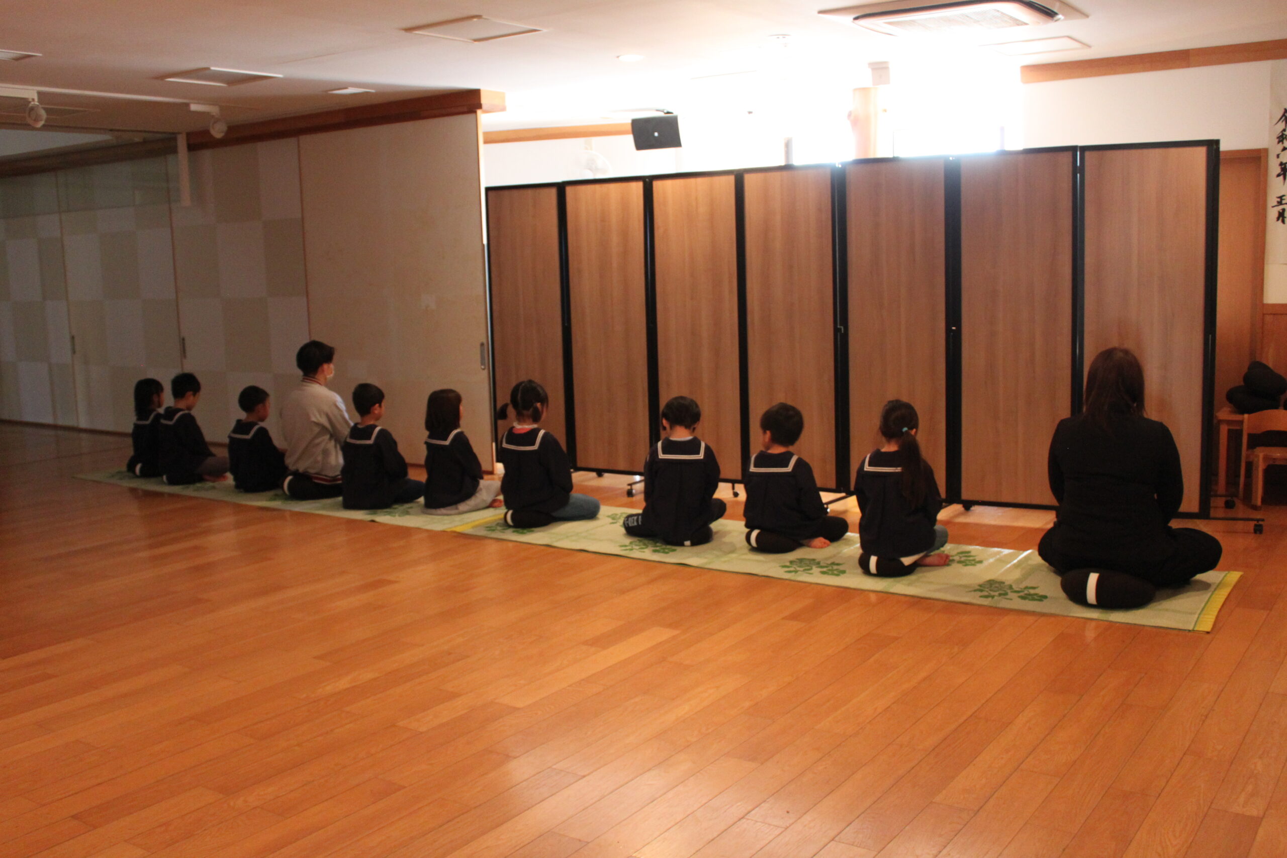 その後坐禅を行い、慣れた様子で落ち着いて参加することが出来ました。静かに座れることで、自分の気持ちを落ち着かせたり、コントロールしたりする力が培われます。坐禅1つとっても、子どもの学びや成長に繋がっています。