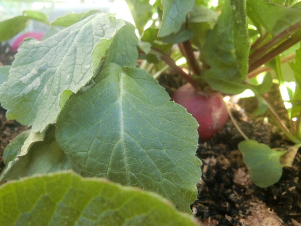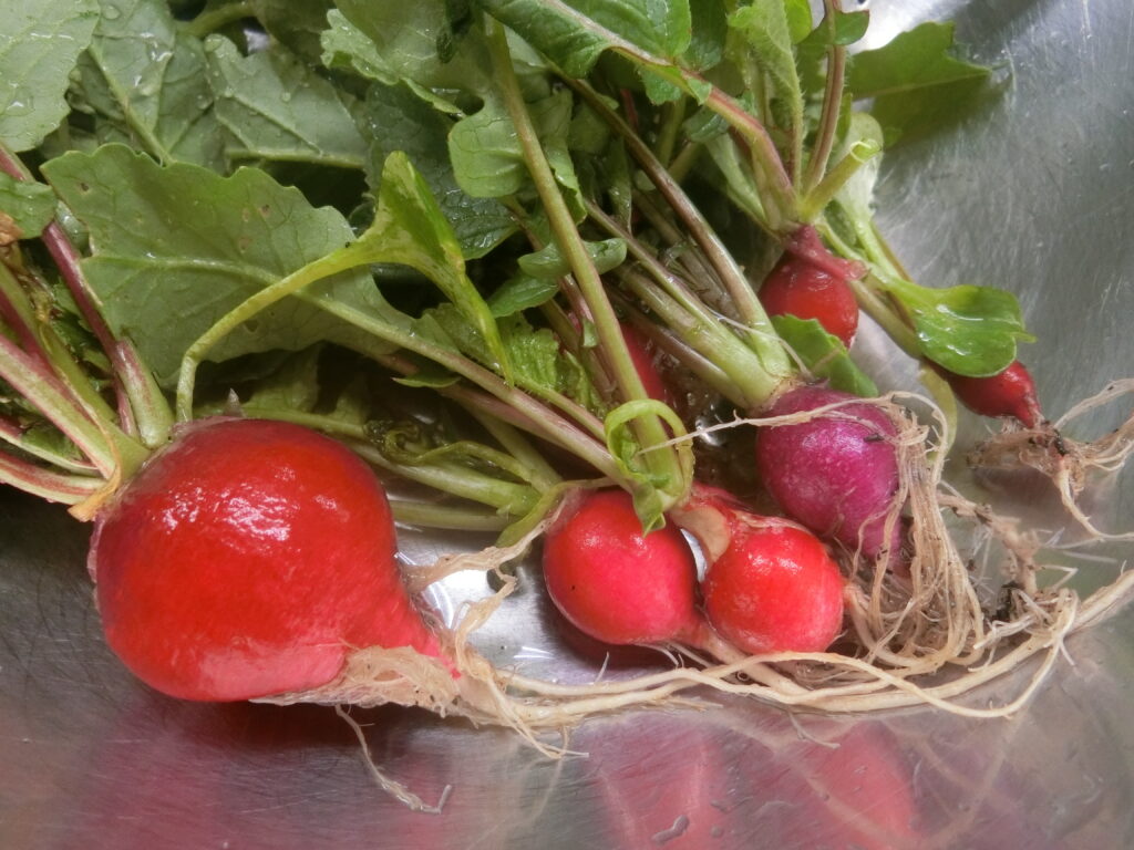 今朝は畑のダンボールコンポストの土で育ったラディッシュを収穫しました。