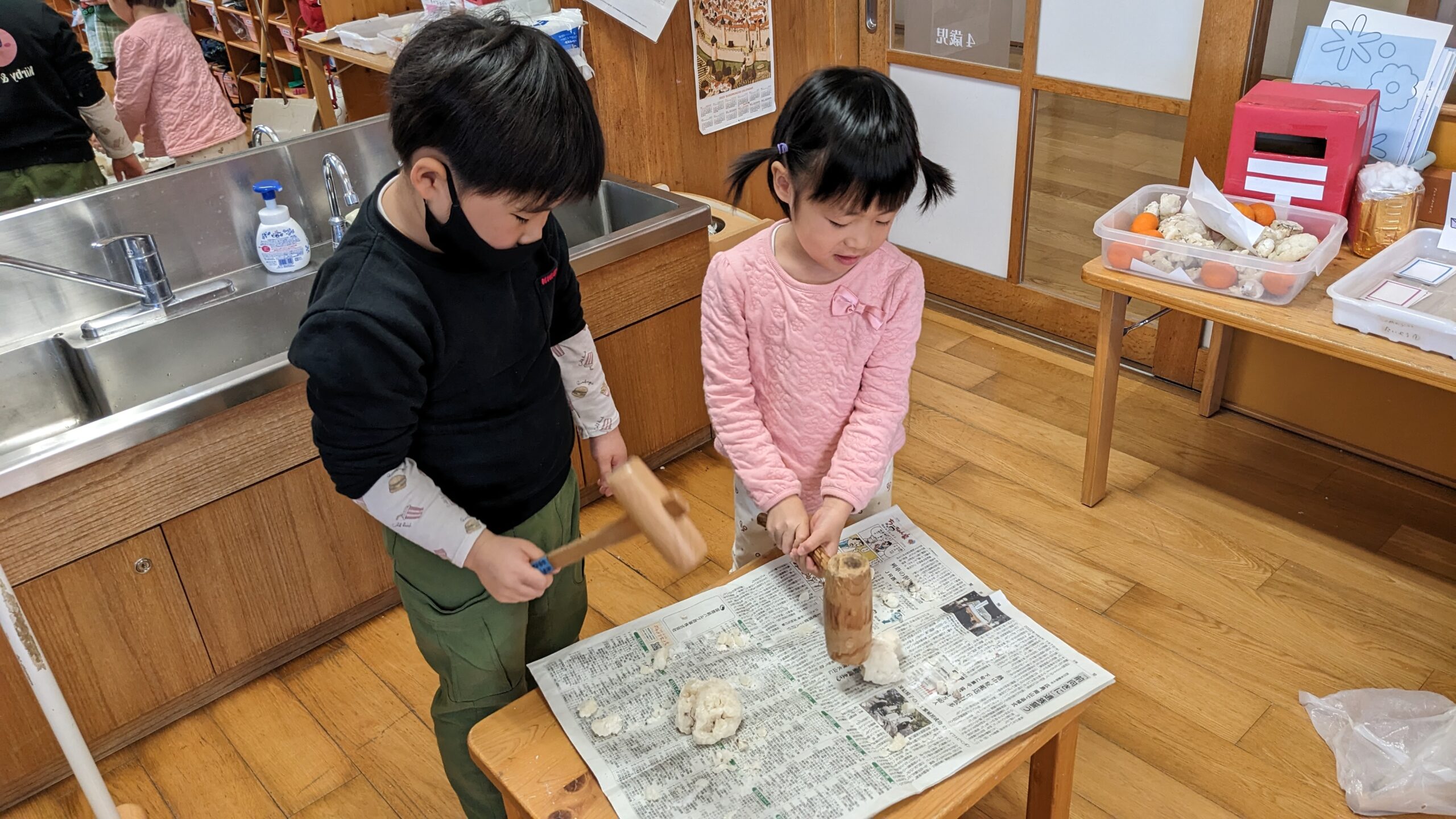 優しく叩く子、力いっぱい叩く子、さまざまな姿が見られました。