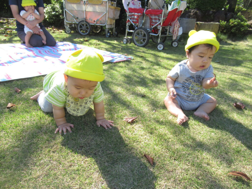 何度もお散歩に出かけ、運動会でも慣れ親しんだ芝生。チクチクした感触が苦手だった子も今ではその感触も楽しめるようになりました!