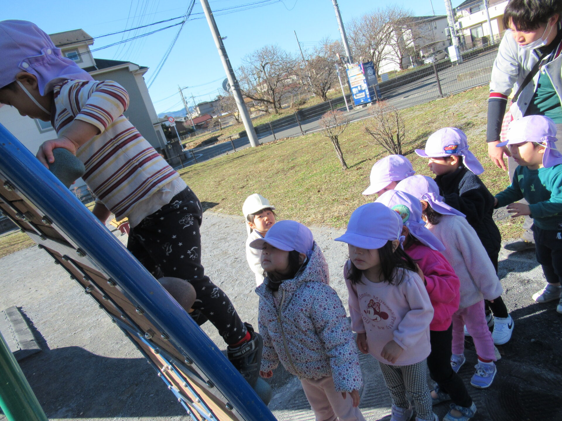 公園では、アスレチック遊具が人気で元気いっぱいに身体を動かして遊んでいました。特に「クライミング」は大人気で順番待ちの列が。