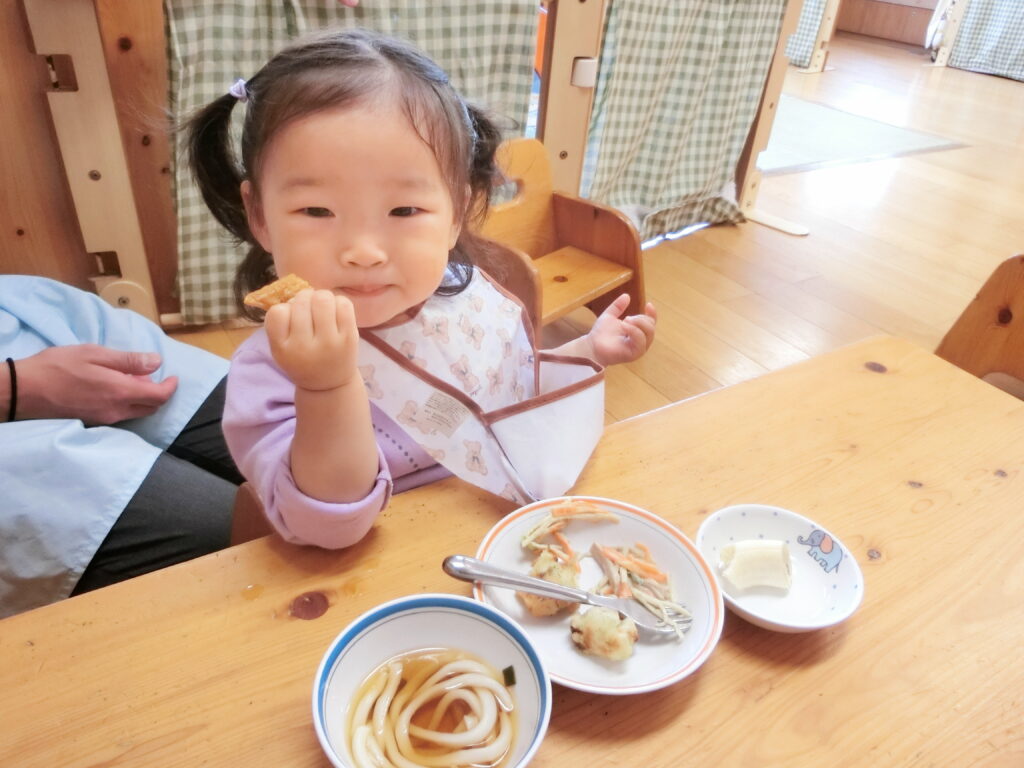 みんなが大好きな給食の時間☆「ごはん食べようか!」と声をかけると、ぱっ!と表情を輝かせて食事コーナーまで自ら足を運んでいます♪今日も美味しそうにもりもりよく食べていました。みんなで食べると美味しいね!