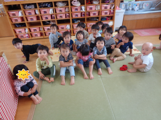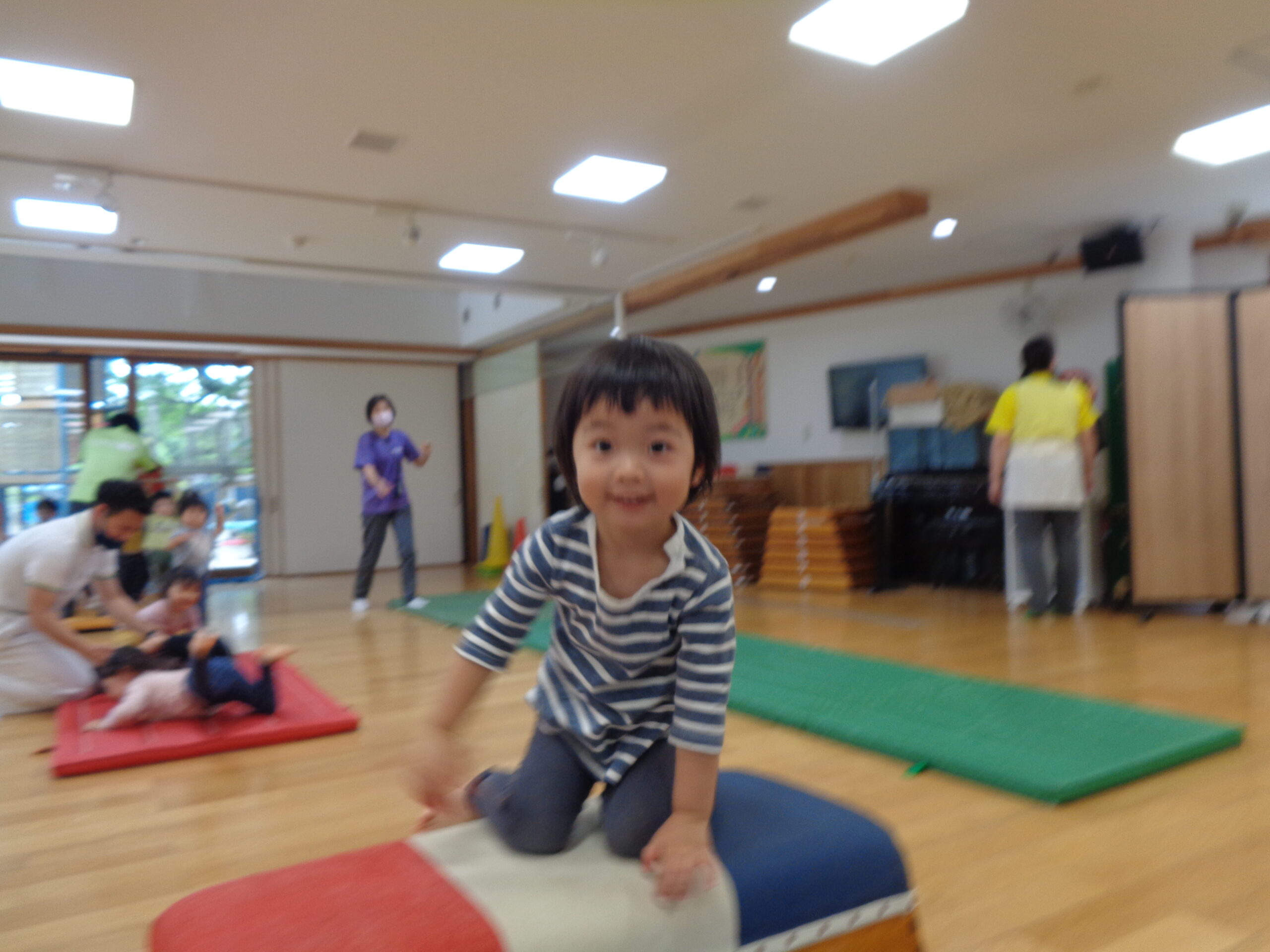 大好きな体操教室の前に‘‘体操座り‘‘の練習。「体操座りできるかな?」と声をかけると背筋をピンと伸ばし上手に座れました。講師の前でも正しく座ることができた子どもたちです。教室が終わると「ありがとうございました」とお礼も言えました。進級してからの成長を感じられる瞬間でした。