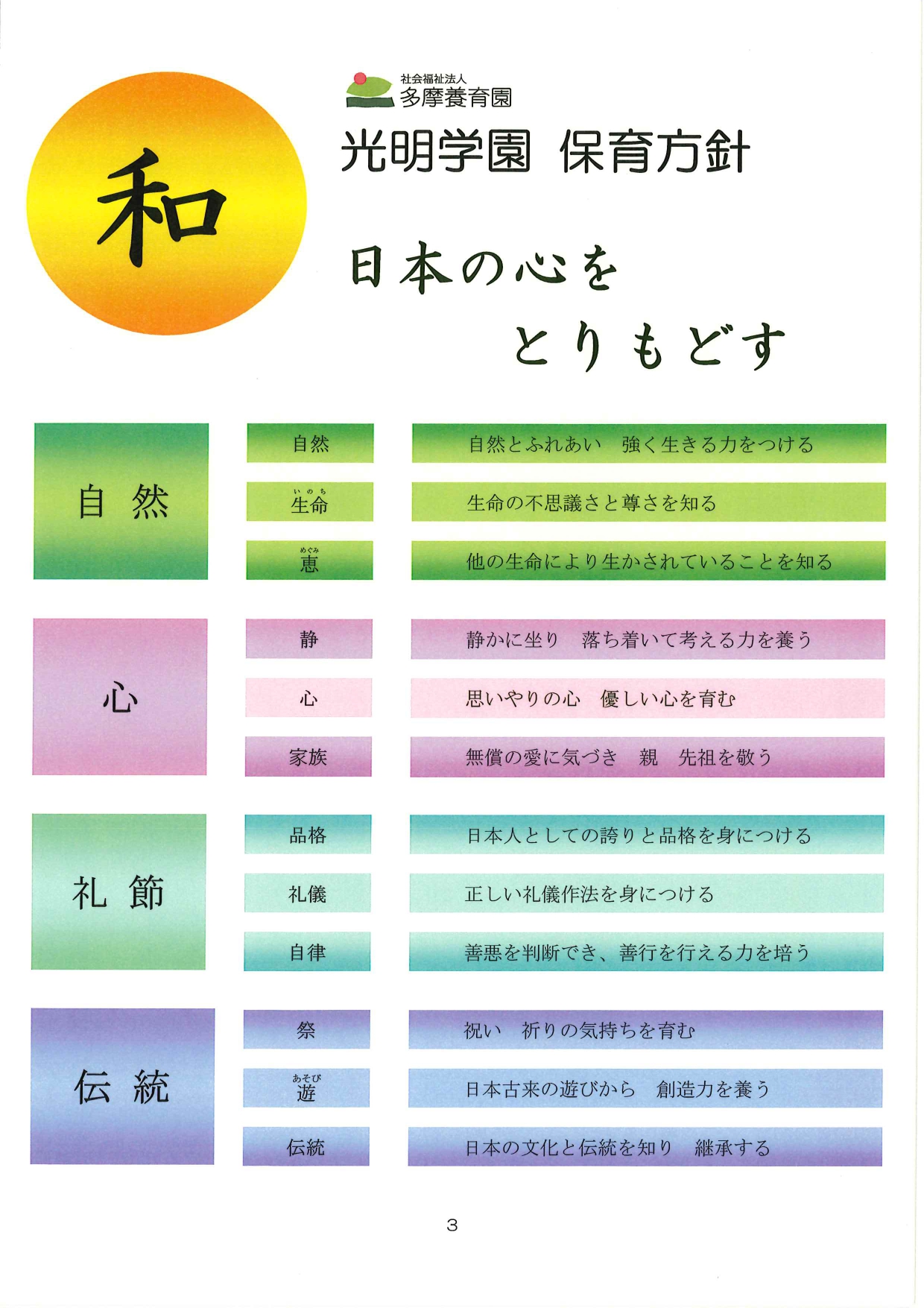 日本にある美しい四季や自然、それを彩る歳時記、豊かな文化や芸能、伝統文化昔から培われ、脈々と受け継がれてきた大切な日本の心。今の日本では、それらが疎かにされ、失いかけているのではないか…日本人として伝えていくべき「大切なこころ」を一つひとつ守り育み、未来を担う子どもたちに伝承していくことを目指して保育方針 和~日本の心をとりもどす~ を掲げた教育及び保育内容を展開しています。和の保育方針取組紹介自然生命生き物や野菜の栽培等を通して、命が生まれ姿かたちを変え成長していくプロセスを体験し、生命の不思議さと尊さを伝えています。生命生き物や野菜の栽培等を通して、命が生まれ姿かたちを変え成長していくプロセスを体験し、生命の不思議さと尊さを伝えています。生命生き物や野菜の栽培等を通して、命が生まれ姿かたちを変え成長していくプロセスを体験し、生命の不思議さと尊さを伝えています。心静当園は坐禅を行っています。静かに座り、心を落ち着かせることで、物事に集中して取り組み、じっくりと考える力を養います。静当園は坐禅を行っています。静かに座り、心を落ち着かせることで、物事に集中して取り組み、じっくりと考える力を養います。静当園は坐禅を行っています。静かに座り、心を落ち着かせることで、物事に集中して取り組み、じっくりと考える力を養います。礼節「おはようございます」「ありがとう」「いただきます」普段の挨拶が、人との関わりの始まりです。まずは、大人が手本になり、子どもたちと一緒に第一歩を踏み出しています。「おはようございます」「ありがとう」「いただきます」普段の挨拶が、人との関わりの始まりです。まずは、大人が手本になり、子どもたちと一緒に第一歩を踏み出しています。「おはようございます」「ありがとう」「いただきます」普段の挨拶が、人との関わりの始まりです。まずは、大人が手本になり、子どもたちと一緒に第一歩を踏み出しています。伝統まつりお祭りは地域の方との交流を深める大事な機会。日本の伝統行事としてのお祭りの持つ意味を伝えながら、盆踊りを踊ったり、手作りの神輿を担いだり、みんなでまつりの雰囲気を楽しみます。まつりお祭りは地域の方との交流を深める大事な機会。日本の伝統行事としてのお祭りの持つ意味を伝えながら、盆踊りを踊ったり、手作りの神輿を担いだり、みんなでまつりの雰囲気を楽しみます。まつりお祭りは地域の方との交流を深める大事な機会。日本の伝統行事としてのお祭りの持つ意味を伝えながら、盆踊りを踊ったり、手作りの神輿を担いだり、みんなでまつりの雰囲気を楽しみます。伝統昔ながらの行事や遊びなどを地域の方に教えていただきながら楽しんでいます。伝承遊びを通じて地域の方と触れ合うひと時を大切にしています。伝統昔ながらの行事や遊びなどを地域の方に教えていただきながら楽しんでいます。伝承遊びを通じて地域の方と触れ合うひと時を大切にしています。伝統昔ながらの行事や遊びなどを地域の方に教えていただきながら楽しんでいます。伝承遊びを通じて地域の方と触れ合うひと時を大切にしています。